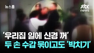 '우리집 일에 신경 꺼'…두 손 수갑 묶이고도 '박치기' / JTBC 뉴스룸