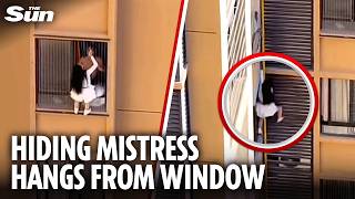Moment mistress nearly PLUNGES to her death from window whil…