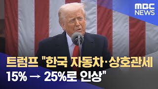 트럼프 "한국 자동차·상호관세 15% → 25%로 인상" (2026.01.27/뉴스투데이/MBC)